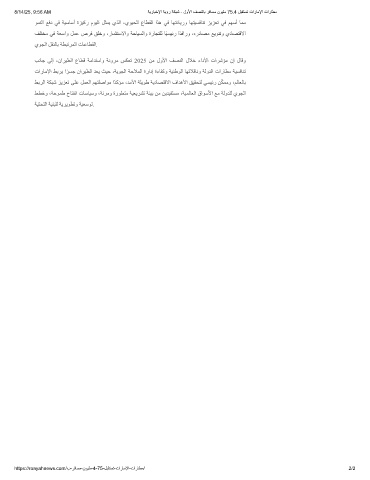 ﺐﻧﺎﺟ ﻰﻟإ ،ناﺮﯿﻄﻟا عﺎﻄﻗ ﺔﻣاﺪﺘﺳاو ﺔﻧوﺮﻣ ﺲﻜﻌﺗ 2025 ﻦﻣ لوﻷا ﻒﺼﻨﻟا لﻼﺧ ءادﻷا تاﺮﺷﺆﻣ نإ لﺎﻗو