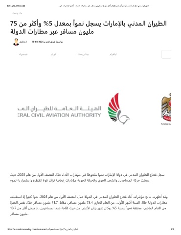8/14/25, 9:56 AM موﯾﻟا تارﺎﻣﻹا رﺎﺑﺧأ | ﺔﻟودﻟا تارﺎطﻣ رﺑﻋ رﻓﺎﺳﻣ نوﯾﻠﻣ 75 نﻣ رﺛﻛأو %5 لدﻌﻣﺑ ًاوﻣﻧ لﺟﺳﯾ تارﺎﻣﻹﺎﺑ ﻲﻧدﻣﻟا نارﯾطﻟا