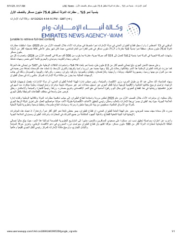 8/14/25, 9:57 AM UAE News - لوﻷا فﺻﻧﻟﺎﺑ رﻓﺎﺳﻣ نوﯾﻠﻣ 75.4 لﺑﻘﺗﺳﺗ ﺔﻟودﻟا تارﺎطﻣ .. %5 وﻣﻧ ﺔﺑﺳﻧﺑ - تارﺎﻣﻹا رﺎﺑﺧأ