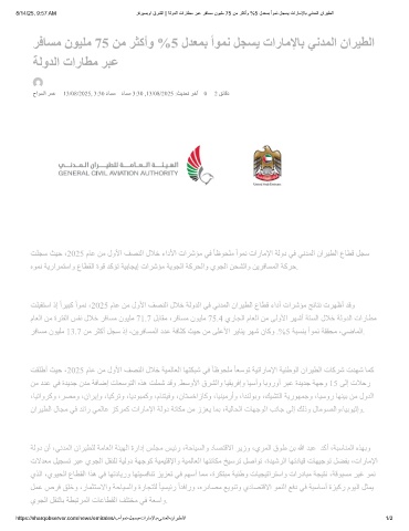 8/14/25, 9:57 AM رﻓرﯾﺳﺑوا قرﺷﻟا | ﺔﻟودﻟا تارﺎطﻣ رﺑﻋ رﻓﺎﺳﻣ نوﯾﻠﻣ 75 نﻣ رﺛﻛأو %5 لدﻌﻣﺑ ًاوﻣﻧ لﺟﺳﯾ تارﺎﻣﻹﺎﺑ ﻲﻧدﻣﻟا نارﯾطﻟا