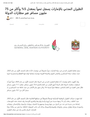 8/14/25, 9:57 AM قرﺷﻟا رﺎﺑﺧأ – ﺔﻟودﻟا تارﺎطﻣ رﺑﻋ رﻓﺎﺳﻣ نوﯾﻠﻣ 75 نﻣ رﺛﻛأو %5 لدﻌﻣﺑ ًاوﻣﻧ لﺟﺳﯾ تارﺎﻣﻹﺎﺑ ﻲﻧدﻣﻟا نارﯾطﻟا