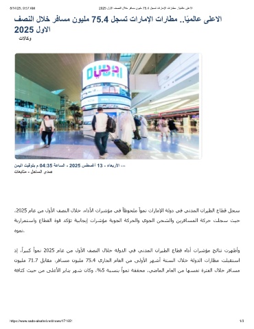 8/14/25, 9:57 AM 2025 لوﻻا فﺻﻧﻟا لﻼﺧ رﻓﺎﺳﻣ نوﯾﻠﻣ 75.4 لﺟﺳﺗ تارﺎﻣﻹا تارﺎطﻣ ..ﺎًﯾﻣﻟﺎﻋ ﻰﻠﻋﻻا