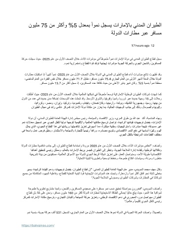 نويلم 75 نم رثكأو % 5 لدعمب اومن لجسي تاراملإاب يندملا ناريطلا