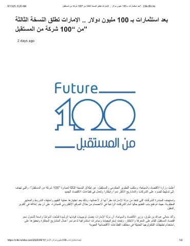 8/13/25, 8:20 AM لﺑﻘﺗﺳﻣﻟا نﻣ ﺔﻛرﺷ 100" نﻣ ﺔﺛﻟﺎﺛﻟا ﺔﺧﺳﻧﻟا ﻖﻠطﺗ تارﺎﻣﻹا .. رﻻود نوﯾﻠﻣ 100 ـﺑ تارﺎﻣﺛﺗﺳا دﻌﺑ" - Elite Bricks