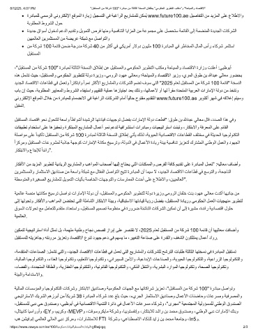 دﯾدﺟﻟا دﺎﺻﺗﻗﻻا تﺎﻋﺎطﻗ ﻲﻓ لﻣﻌﺗو ًارﺎﻛﺗﺑاو ًاوﻣﻧ رﺛﻛﻷا ﻊﯾرﺎﺷﻣﻟاو تﺎﻛرﺷﻟا مﺿﺗ فوﺳ ﻲﺗﻟا "2025 مﺎﻌﻟ لﺑﻘﺗﺳﻣﻟا نﻣ ﺔﻛرﺷ 100 ﺔﻣﺋﺎﻗ" ﺔﺧﺳﻧﻟا