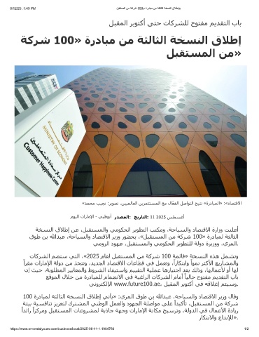 8/12/25, 1:49 PM لﺑﻘﺗﺳﻣﻟا نﻣ ﺔﻛرﺷ 100» ةردﺎﺑﻣ نﻣ ﺔﺛﻟﺎﺛﻟا ﺔﺧﺳﻧﻟا قﻼطإ»