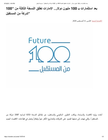 8/12/25, 1:49 PM نطوﻟا ةدﯾرﺟ › ”لﺑﻘﺗﺳﻣﻟا نﻣ ﺔﻛرﺷ 100“ نﻣ ﺔﺛﻟﺎﺛﻟا ﺔﺧﺳﻧﻟا ﻖﻠطﺗ تارﺎﻣﻹا ..رﻻود نوﯾﻠﻣ 100 ـﺑ تارﺎﻣﺛﺗﺳا دﻌﺑ