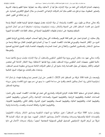 8/12/25, 1:49 PM نطوﻟا ةدﯾرﺟ › ”لﺑﻘﺗﺳﻣﻟا نﻣ ﺔﻛرﺷ 100“ نﻣ ﺔﺛﻟﺎﺛﻟا ﺔﺧﺳﻧﻟا ﻖﻠطﺗ تارﺎﻣﻹا ..رﻻود نوﯾﻠﻣ 100 ـﺑ تارﺎﻣﺛﺗﺳا دﻌﺑ