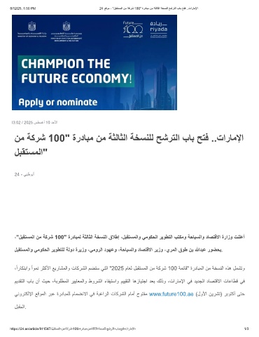 8/12/25, 1:50 PM 24 ﻊﻗوﻣ - "لﺑﻘﺗﺳﻣﻟا نﻣ ﺔﻛرﺷ 100" ةردﺎﺑﻣ نﻣ ﺔﺛﻟﺎﺛﻟا ﺔﺧﺳﻧﻠﻟ ﺢﺷرﺗﻟا بﺎﺑ ﺢﺗﻓ ..تارﺎﻣﻹا
