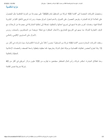 لوﺻﺣﻟا لﺛﻣ ﺔﯾﺳﻓﺎﻧﺗﻟا ﺎﯾازﻣﻟا نﻣ ﺔﻋوﻣﺟﻣ ﻰﻠﻋ "2025 مﺎﻌﻟ لﺑﻘﺗﺳﻣﻟا نﻣ ﺔﻛرﺷ 100 ﺔﻣﺋﺎﻗ" ﻰﻟإ ﺔﻣﺿﻧﻣﻟا تﺎﻛرﺷﻟا لﺻﺣﺗﺳو
