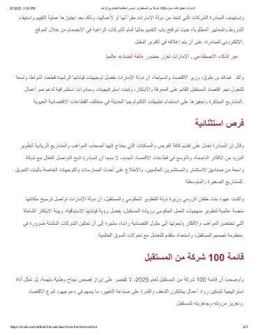 8/12/25, 1:50 PM ةدﺋارﻟا ﻊﯾرﺎﺷﻣﻠﻟ ﺔﯾﺋﺎﻧﺛﺗﺳا صرﻓ ..«لﺑﻘﺗﺳﻣﻟا نﻣ ﺔﻛرﺷ 100» ﺦﺳﻧ ثﻟﺎﺛ ﻖﻠطﺗ تارﺎﻣﻹا