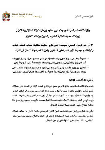 ىلع ةلصاحلا تاجتنملا قيوست معد ي مولعلل يبد عمجمو ةحايسلاو داصتقلاا ةرازو نيب نواعتلا •