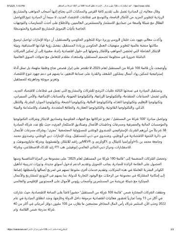 8/12/25, 1:50 PM لﺑﻘﺗﺳﻣﻟا نﻣ ﺔﻛرﺷ 100" نﻣ ﺔﺛﻟﺎﺛﻟا ﺔﺧﺳﻧﻟا ﻖﻠطﺗ تارﺎﻣﻹا ..رﻻود نوﯾﻠﻣ 100 ـﺑ تارﺎﻣﺛﺗﺳا دﻌﺑ" - Nas News UAE