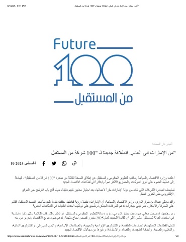 8/12/25, 1:51 PM لﺑﻘﺗﺳﻣﻟا نﻣ ﺔﻛرﺷ 100" ـﻟ ةدﯾدﺟ ﺔﻗﻼطﻧا ..مﻟﺎﻌﻟا ﻰﻟإ تارﺎﻣﻹا نﻣ - ةدﺎﻌﺳ رﺎﺑﺧأ"