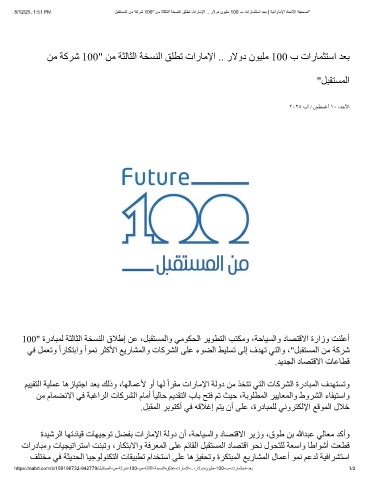 8/12/25, 1:51 PM لﺑﻘﺗﺳﻣﻟا نﻣ ﺔﻛرﺷ 100" نﻣ ﺔﺛﻟﺎﺛﻟا ﺔﺧﺳﻧﻟا ﻖﻠطﺗ تارﺎﻣﻹا .. رﻻود نوﯾﻠﻣ 100 ب تارﺎﻣﺛﺗﺳا دﻌﺑ | ﺔﯾﺗارﺎﻣﻹا دﺎﺣﺗﻻا ﺔﻔﯾﺣﺻ"