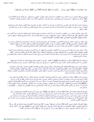 ﻰﻠﻋ لوﺻﺣﻟا ﺎﮭﻧﻣو ﺔﯾﺳﻓﺎﻧﺗﻟا ﺎﯾازﻣﻟا نﻣ ﺔﻋوﻣﺟﻣ ﻰﻠﻋ ”2025 مﺎﻌﻟ لﺑﻘﺗﺳﻣﻟا نﻣ ﺔﻛرﺷ 100 ﺔﻣﺋﺎﻗ“ ﻰﻟإ ﺔﻣﺿﻧﻣﻟا تﺎﻛرﺷﻟا لﺻﺣﺗو