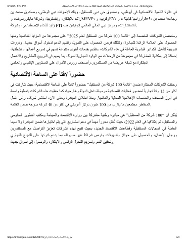 ﺎﮭﻨﻣو ﺔﯿﺴﻓﺎﻨﺘﻟا ﺎﯾاﺰﻤﻟا ﻦﻣ ﺔﻋﻮﻤﺠﻣ ﻰﻠﻋ ”2025 مﺎﻌﻟ ﻞﺒﻘﺘﺴﻤﻟا ﻦﻣ ﺔﻛﺮﺷ 100 ﺔﻤﺋﺎﻗ“ ﻰﻟإ ﺔﻤﻀﻨﻤﻟا تﺎﻛﺮﺸﻟا ﻞﺼﺤﺘﺳو