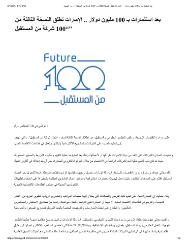 8/12/25, 1:54 PM دﺎﯾﺻﻟا راد – ”لﺑﻘﺗﺳﻣﻟا نﻣ ﺔﻛرﺷ 100“ نﻣ ﺔﺛﻟﺎﺛﻟا ﺔﺧﺳﻧﻟا ﻖﻠطﺗ تارﺎﻣﻹا .. رﻻود نوﯾﻠﻣ 100 ـﺑ تارﺎﻣﺛﺗﺳا دﻌﺑ