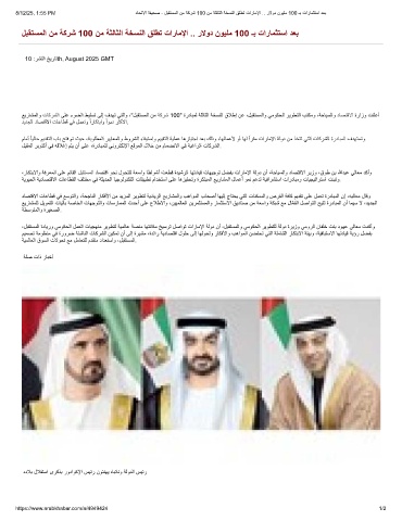 8/12/25, 1:55 PM دﺎﺣﺗﻻا ﺔﻔﯾﺣﺻ - لﺑﻘﺗﺳﻣﻟا نﻣ ﺔﻛرﺷ 100 نﻣ ﺔﺛﻟﺎﺛﻟا ﺔﺧﺳﻧﻟا ﻖﻠطﺗ تارﺎﻣﻹا .. رﻻود نوﯾﻠﻣ 100 ـﺑ تارﺎﻣﺛﺗﺳا دﻌﺑ