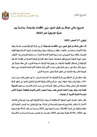 ةية و ة ددددساةم دددددسجي ةيتاراملإا ةأرملا موي نأ ، ةحاياااسلاو دااااصتقلاا ريزو ،ي رملا قوط نب اللهدبع يلاعم دكأ