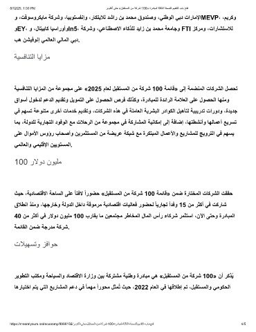 ﺔﯾﺳﻓﺎﻧﺗﻟا ﺎﯾازﻣﻟا نﻣ ﺔﻋوﻣﺟﻣ ﻰﻠﻋ «2025 مﺎﻌﻟ لﺑﻘﺗﺳﻣﻟا نﻣ ﺔﻛرﺷ 100 ﺔﻣﺋﺎﻗ» ﻰﻟإ ﺔﻣﺿﻧﻣﻟا تﺎﻛرﺷﻟا لﺻﺣﺗ