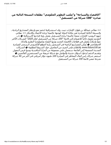 ﺮﺜﻛﻷا تﺎﻛﺮﺸﻠﻟ "2025 مﺎﻌﻟ ﻞﺒﻘﺘﺴﻤﻟا ﻦﻣ ﺔﻛﺮﺷ 100" ﺔﻤﺋﺎﻗ ﻰﻟإ مﺎﻤﻀﻧﻼﻟ ﺎﯿﻟﺎﺣ حﻮﺘﻔﻣ ﻢﻳﺪﻘﺘﻟا