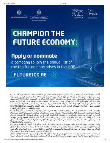 ﺔﯿﺑﺮﻌﻟا تارﺎﻣﻹا ﺔﻟود ﻦﻣ ﺬﺨﺘﺗو ﺪﻳﺪﺠﻟا دﺎﺼﺘﻗﻻا تﺎﻋﺎﻄﻗ ﻲﻓ ﻞﻤﻌﺗو ارﺎﻜﺘﺑاو اﻮﻤﻧ ﺮﺜﻛﻷا ﻊﻳرﺎﺸﻤﻟاو تﺎﻛﺮﺸﻟا ﻢﻀﺗ