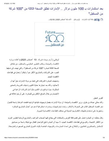 8/12/25, 1:57 PM تﻧﯾوﺑ ودرأ - لﺑﻘﺗﺳﻣﻟا نﻣ ﺔﻛرﺷ 100 نﻣ ﺔﺛﻟﺎﺛﻟا ﺔﺧﺳﻧﻟا ﻖﻠطﺗ تارﺎﻣﻹا .. رﻻود نوﯾﻠﻣ 100 ـﺑ تارﺎﻣﺛﺗﺳا دﻌﺑ