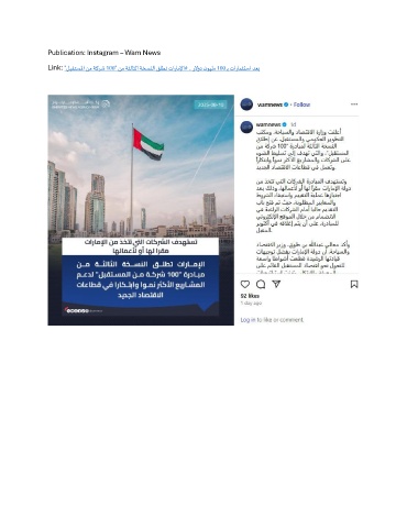 Publication: Instagram – Wam News Link: "لبقتسلما نم ةكرش 100" نم ةثلاثلا ةخسنلا قلطت تاراملإا# .. رلاود نويلم 100 ـب تارامثتسا دعب