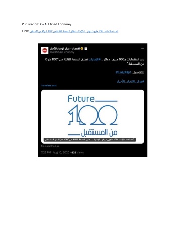 Publication: X – Al Etihad Economy Link: لبقتسلما نم ةكرش 100" نم ةثلاثلا ةخسنلا قلطت تاراملإا# .. رلاود نويلم 100ـب تارامثتسا دعب"