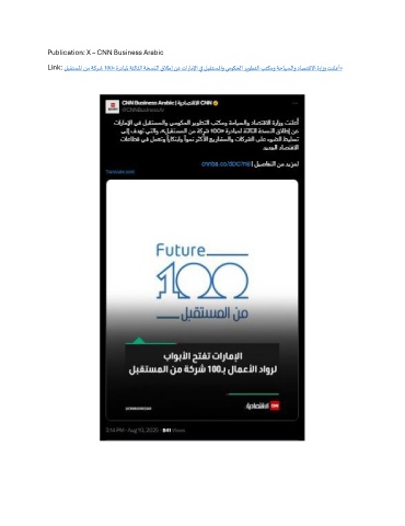 Publication: X – CNN Business Arabic Link: لبقتسلما نم ةكرش 100« ةردابلم ةثلاثلا ةخسنلا قلاطإ نع تاراملإا يف لبقتسلماو يموكحلا ريوطتلا بتكمو ةحايسلاو داصتقلاا ةرازو تنلعأ»