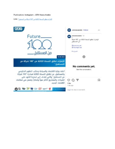 Publication: Instagram – ARN News Arabic Link: "لبقتسلما نم ةكرش 100" نم ةثلاثلا ةخسنلا قلطت تاراملإا
