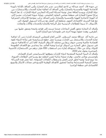 8/12/25, 2:27 PM ﻲﻣﻟﺎﻋ يدﺎﺻﺗﻗا زﻛرﻣﻛ ﺔﻟودﻟا ﺔﻧﺎﻛﻣ ﺦﯾﺳرﺗ ﻲﻓ مﮭﺳﺗ ﻲﺳورﻟا دﺎﺣﺗﻻا ﻊﻣ تارﺎﻣﺛﺗﺳﻻاو تﺎﻣدﺧﻟا ةرﺎﺟﺗ ﺔﯾﻗﺎﻔﺗا :تارﺎﻣﻹا ﺔﻣوﻛﺣ ﻲﻓ نوﻟوؤﺳﻣو ءارزو