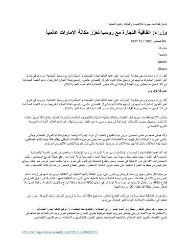زيزعت يف اهرودو ،ةيداحتلاا ايسور عم تارامثتسلااو تامدخلا ةراجت ةيقافتا ةيمهأ ىلع ،تاراملإا ةموكح يف نولوؤسمو ءارزو دكأ