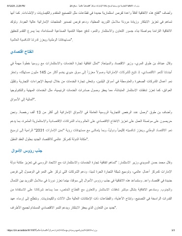 ﻲﻓ ﺔﻣﮭﻣ ًةوطﺧ ﺎﯾﺳور ﻊﻣ تارﺎﻣﺛﺗﺳﻻاو تﺎﻣدﺧﻟا ةرﺎﺟﺗ ﺔﯾﻗﺎﻔﺗا لﺛﻣﺗ" :ﺔﺣﺎﯾﺳﻟاو دﺎﺻﺗﻗﻻا رﯾزو ،يرﻣﻟا قوط نﺑ ﷲدﺑﻋ لﺎﻗو