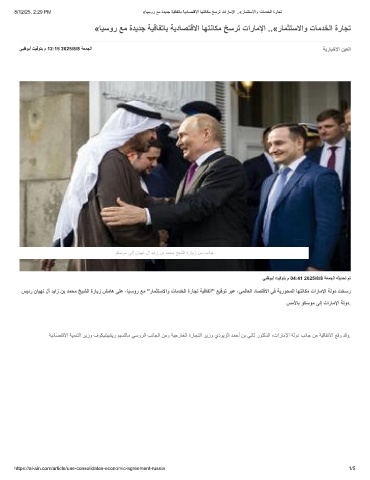 8/12/25, 2:29 PM «ﺎﯾﺳور ﻊﻣ ةدﯾدﺟ ﺔﯾﻗﺎﻔﺗﺎﺑ ﺔﯾدﺎﺻﺗﻗﻻا ﺎﮭﺗﻧﺎﻛﻣ ﺦﺳرﺗ تارﺎﻣﻹا ..«رﺎﻣﺛﺗﺳﻻاو تﺎﻣدﺧﻟا ةرﺎﺟﺗ