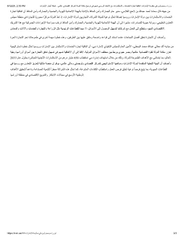 8/12/25, 2:30 PM تارﺎﻣﻹا رﺎﺑﺧأ ﺔﻛﺑﺷ - ﻲﻣﻟﺎﻋ يدﺎﺻﺗﻗا زﻛرﻣﻛ ﺔﻟودﻟا ﺔﻧﺎﻛﻣ ﺦﯾﺳرﺗ ﻲﻓ مﮭﺳﺗ ﻲﺳورﻟا دﺎﺣﺗﻻا ﻊﻣ تارﺎﻣﺛﺗﺳﻻاو تﺎﻣدﺧﻟا ةرﺎﺟﺗ ﺔﯾﻗﺎﻔﺗا :تارﺎﻣﻹا ﺔﻣوﻛﺣ ﻲﻓ نوﻟوؤﺳﻣو ءارزو