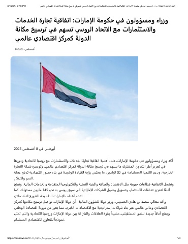 8/12/25, 2:30 PM ﻲﻣﻟﺎﻋ يدﺎﺻﺗﻗا زﻛرﻣﻛ ﺔﻟودﻟا ﺔﻧﺎﻛﻣ ﺦﯾﺳرﺗ ﻲﻓ مﮭﺳﺗ ﻲﺳورﻟا دﺎﺣﺗﻻا ﻊﻣ تارﺎﻣﺛﺗﺳﻻاو تﺎﻣدﺧﻟا ةرﺎﺟﺗ ﺔﯾﻗﺎﻔﺗا :تارﺎﻣﻹا ﺔﻣوﻛﺣ ﻲﻓ نوﻟوؤﺳﻣو ءارزو - Nas News UAE