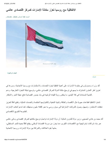 8/12/25, 2:30 PM 24 تارﺎﻣﻹا | ﻲﻣﻟﺎﻋ يدﺎﺻﺗﻗا زﻛرﻣﻛ تارﺎﻣﻹا ﺔﻧﺎﻛﻣ ززﻌﺗ ﺎﯾﺳور ﻊﻣ ﺔﯾﻗﺎﻔﺗﻻا