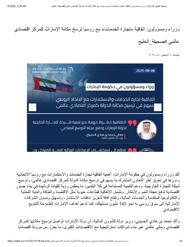 8/12/25, 2:30 PM ﺞﯾﻠﺧﻟا_ﺔﻔﯾﺣﺻ# ﻲﻣﻟﺎﻋ يدﺎﺻﺗﻗا زﻛرﻣﻛ تارﺎﻣﻹا ﺔﻧﺎﻛﻣ ﺦﺳرﺗ ﺎﯾﺳور ﻊﻣ «تﺎﻣدﺧﻟا ةرﺎﺟﺗ» ﺔﯾﻗﺎﻔﺗا :نوﻟوؤﺳﻣو ءارزو | ﺔﯾﺗارﺎﻣﻹا ﺞﯾﻠﺧﻟا ﺔﻔﯾﺣﺻ