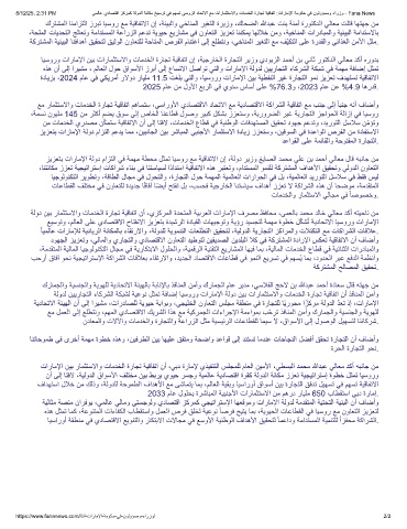 زﯾزﻌﺗﺑ تارﺎﻣﻹا ﺔﻟود مازﺗﻟا ﻲﻓ ﺔﻣﮭﻣ ﺔطﺣﻣ لﺛﻣﺗ ﺎﯾﺳور ﻊﻣ ﺔﯾﻗﺎﻔﺗﻻا نإ ،ﺔﻟود رﯾزو ﻎﯾﺎﺻﻟا دﻣﺣﻣ ﻲﻠﻋ نﺑ دﻣﺣأ ﻲﻟﺎﻌﻣ لﺎﻗ ﮫﺑﻧﺎﺟ نﻣ