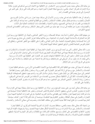 8/12/25, 2:31 PM ً ﺎﯾﻣﻟﺎﻋ ً ﺎﯾدﺎﺻﺗﻗا ًازﻛرﻣ تارﺎﻣﻹا ﺔﻧﺎﻛﻣ ﺦﯾﺳرﺗ ﻲﻓ مﮭﺳﺗ ﺎﯾﺳور ﻊﻣ تارﺎﻣﺛﺗﺳﻻاو تﺎﻣدﺧﻟا ةرﺎﺟﺗ ﺔﯾﻗﺎﻔﺗا :نوﻟوؤﺳﻣو ءارزو