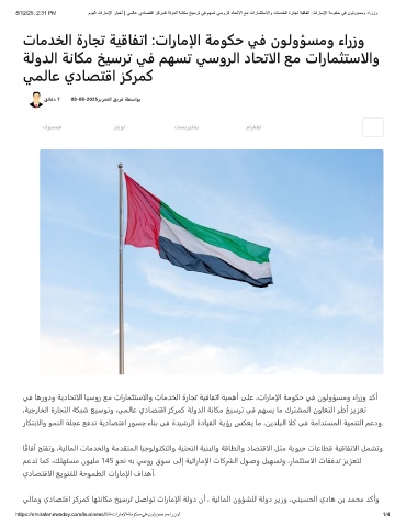 8/12/25, 2:31 PM موﯾﻟا تارﺎﻣﻹا رﺎﺑﺧأ | ﻲﻣﻟﺎﻋ يدﺎﺻﺗﻗا زﻛرﻣﻛ ﺔﻟودﻟا ﺔﻧﺎﻛﻣ ﺦﯾﺳرﺗ ﻲﻓ مﮭﺳﺗ ﻲﺳورﻟا دﺎﺣﺗﻻا ﻊﻣ تارﺎﻣﺛﺗﺳﻻاو تﺎﻣدﺧﻟا ةرﺎﺟﺗ ﺔﯾﻗﺎﻔﺗا :تارﺎﻣﻹا ﺔﻣوﻛﺣ ﻲﻓ نوﻟوؤﺳﻣو ءارزو