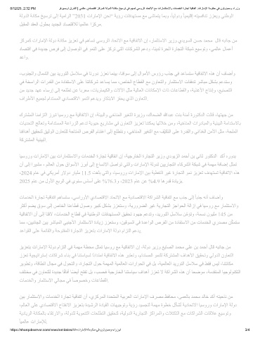 ﺰﯾﺰﻌﺘﺑ تارﺎﻣﻹا ﺔﻟود ماﺰﺘﻟا ﻲﻓ ﺔﻤﮭﻣ ﺔﻄﺤﻣ ﻞﺜﻤﺗ ﺎﯿﺳور ﻊﻣ ﺔﯿﻗﺎﻔﺗﻻا نإ ،ﺔﻟود ﺮﯾزو ﻎﯾﺎﺼﻟا ﺪﻤﺤﻣ ﻲﻠﻋ ﻦﺑ ﺪﻤﺣأ لﺎﻗ ﮫﺒﻧﺎﺟ ﻦﻣ