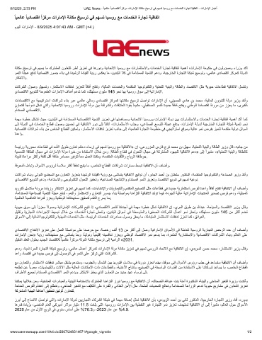 8/12/25, 2:33 PM UAE News - ً ﺎﯾﻣﻟﺎﻋ ً ﺎﯾدﺎﺻﺗﻗا ًازﻛرﻣ تارﺎﻣﻹا ﺔﻧﺎﻛﻣ ﺦﯾﺳرﺗ ﻲﻓ مﮭﺳﺗ ﺎﯾﺳور ﻊﻣ تﺎﻣدﺧﻟا ةرﺎﺟﺗ ﺔﯾﻗﺎﻔﺗا - تارﺎﻣﻹا رﺎﺑﺧأ