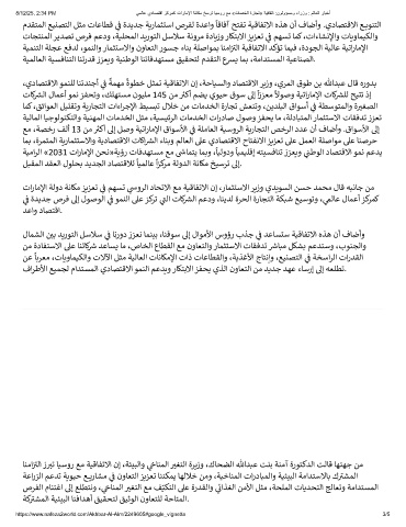 تارﺎﻣﻹا ﺔﻟود ﺔﻧﺎكﻣ ﺰيزﻌﺗ ﻢﻬﺴت وﺮﻟا دﺎﺤﺗﻻا ﻊﻣ ﺔيﻗﺎﻔﺗﻻا نإ ،رﺎﻤﺜتﺳﻻا ﺮيزو يﺪيوﺴﻟا ﻦﺴﺣ ﺪﻤﺤﻣ لﺎﻗ ﻪبﻧﺎﺟ ﻦﻣ