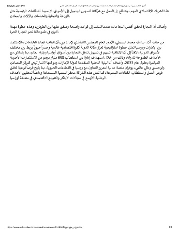 يدﺎﺼﺘﻗا ﺰﻛﺮﻤك يﺗا ﺳﻻا ﺎﻬﻌﻗﻮﻣو تارﺎﻣﻹا ﺔﻟوﺪﻟ ﺔﻣﺪﻘﺘﻤﻟا ﺔيﺘﺤﺘﻟا ﺔينﺒﻟا نأ فﺎﺿأو .2033 مﺎﻋ لﻮﻠﺤب ة ﺎبﻤﻟا