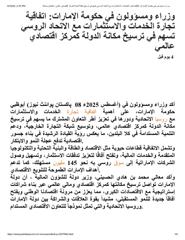 8/12/25, 2:35 PM ٹﻧﺋاوﺑ نﺎﺗﺳﮐﺎﺑ | ﻲﻣﻟﺎﻋ يدﺎﺻﺗﻗا زﻛرﻣﻛ ﺔﻟودﻟا ﺔﻧﺎﻛﻣ ﺦﯾﺳرﺗ ﻲﻓ مﮭﺳﺗ ﻲﺳورﻟا دﺎﺣﺗﻻا ﻊﻣ تارﺎﻣﺛﺗﺳﻻاو تﺎﻣدﺧﻟا ةرﺎﺟﺗ ﺔﯾﻗﺎﻔﺗا :تارﺎﻣﻹا ﺔﻣوﻛﺣ ﻲﻓ نوﻟوؤﺳﻣو ءارزو