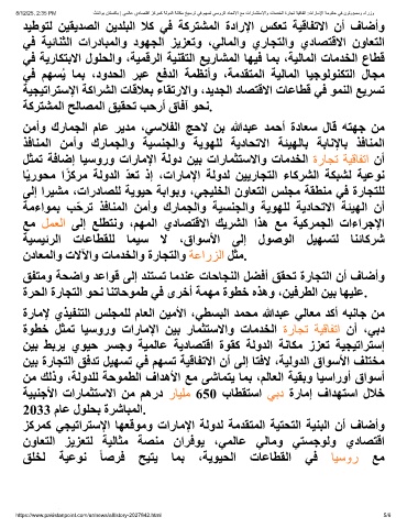 ةﻮﻄﺧ ﻞﺜﻤﺗ ﺎﯿﺳورو تارﺎﻣﻹا ﻦﯿﺑ رﺎﻤﺜﺘﺳﻻاو تﺎﻣﺪﺨﻟا ةرﺎﺠﺗ ﺔﯿﻗﺎﻔﺗا نأ ،ﻲﺑد