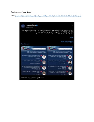 Publication: X – Wam News Link: يلماع يداصتقا زكرمك ةلودلا ةناكم خيسرت يف مهست ي سورلا داحتلاا عم تارامثتسلااو تامدخلا ةراجت ةيقافتا :تاراملإا ةموكح يف نولوؤسمو ءارزو